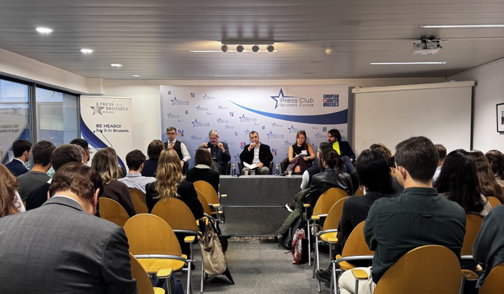 The seminar officially started with a morning briefing in the hotel lobby, where we met Miles Pattenden from Europaeum. We then moved to the Press Club Brussels for the first panel on Disinformation & Media Resilience. It was very interesting to hear about the Europaeum scholars’ project, EU Media Wallet, which provides young adults with free access to independent news to strengthen informed citizenship and democratic resilience. Experts like Eddy Wax (journalist, Euractiv) and Giuseppe Abbamonte (DG Connect, European Commission) discussed how misinformation spreads, the challenges of media integrity, and how European institutions can respond effectively. I found the conversation particularly insightful for understanding how public trust in governance is shaped in the digital age.