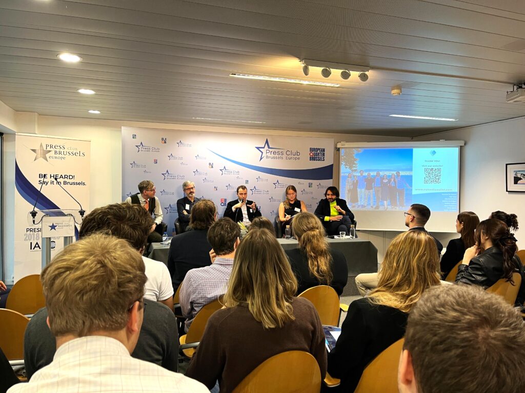 After a swift and pastry-heavy breakfast, we strode through the crisp streets towards Brussels Press Club for our first day of events. The first panel, on disinformation and media resilience, proved interesting, not least because Giuseppe Abbamonte of DG Connect faced the unenviable task of outlining the Commission’s media strategy alongside characteristically sharp scrutiny from journalists and academics. For Eddy Wax of Euractiv, the Commission’s Media Freedom Act is too little too late; for Babette de Naeyer, Ömer Şahin and others of the Europaeum Scholars Programme, a new ‘pay per article’ model of media consumption could provide answers to the challenge of funding quality local media outlets.