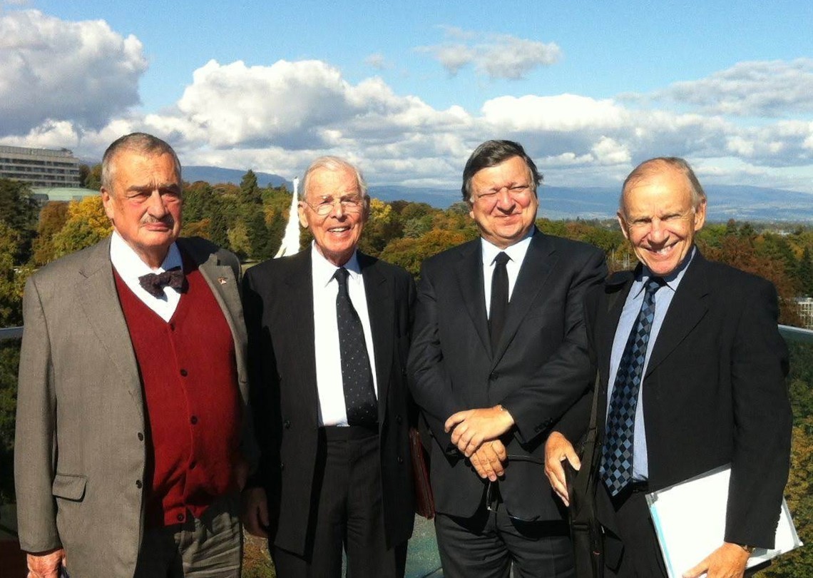 Photo above: Dr Pierre Keller (second from left) in Geneva with Karel Schwarzenberg, José Manuel Barroso and Dr Andrew Graham.